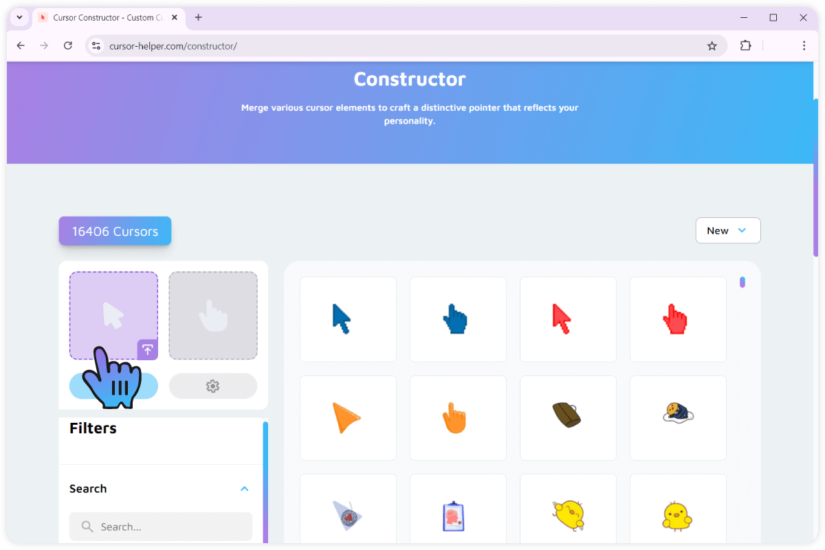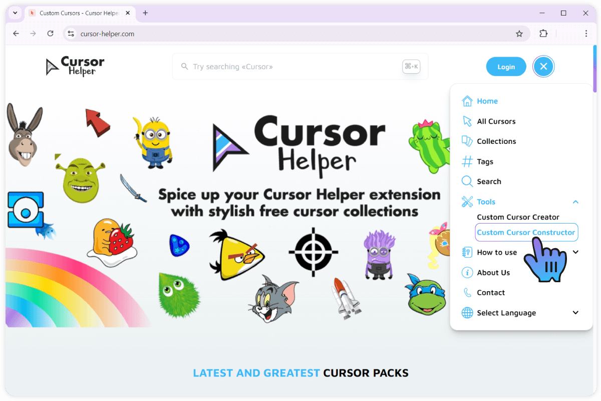 Navigate to the Cursor Helper website and press the “Constructor” link in the upper menu. Or just follow this link to access the cursor constructor tool.