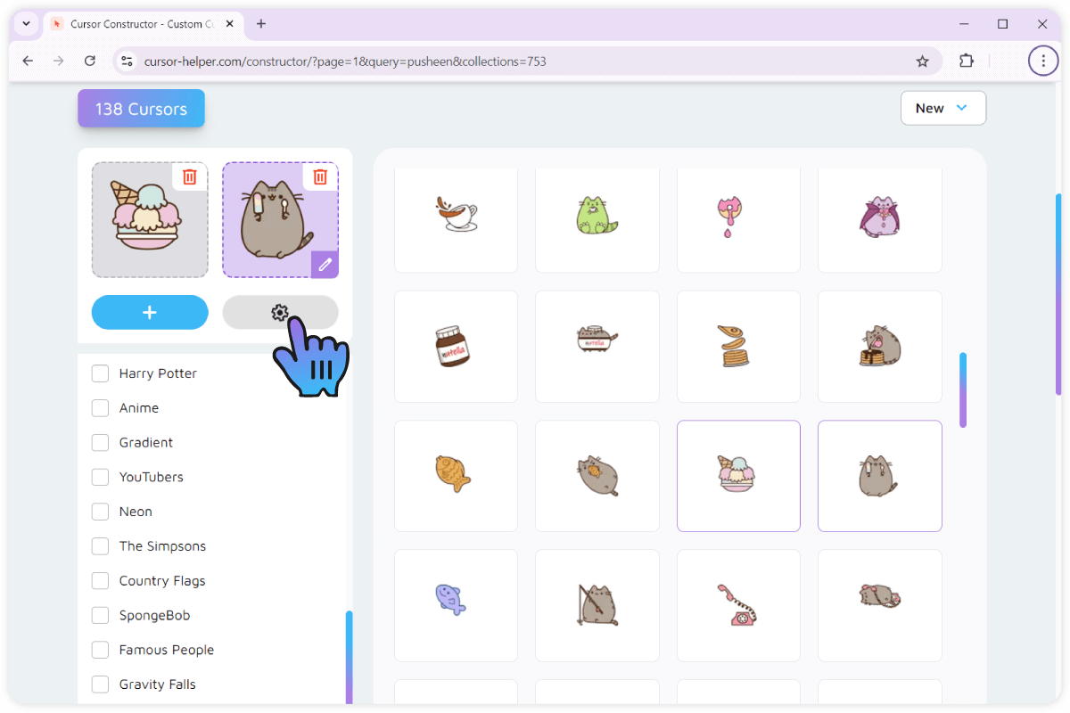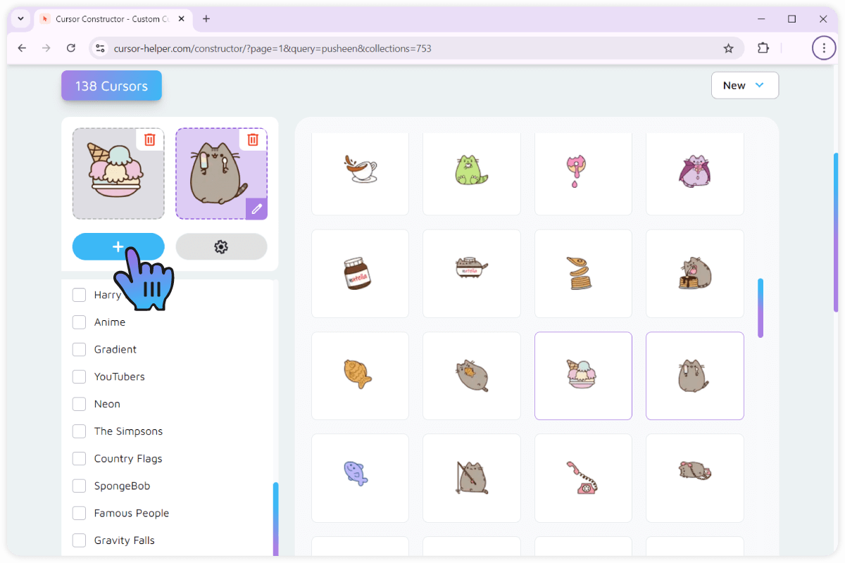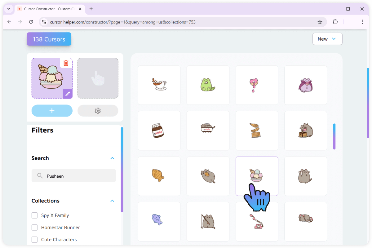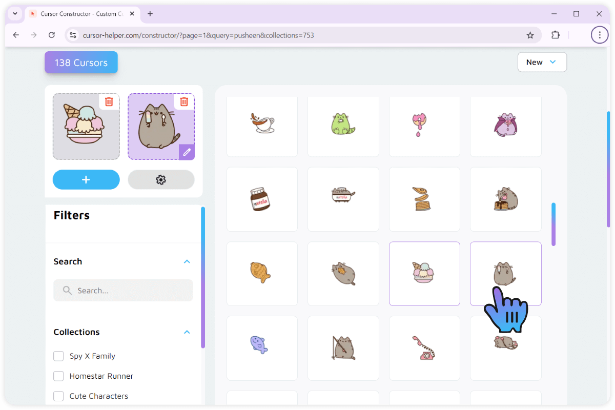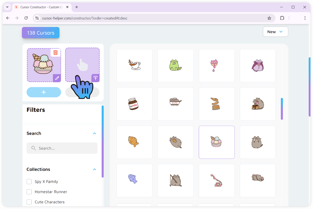 Now, head over to the main area of the page where all of our cursor collection is displayed. You can use filters and search to narrow the displayed results.